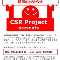 仕事の不安、気持ちが落ち着かない、そんな時、オンラインで仲間と語り合ってみませんか? お申込みはCSRプロジェクトのHPよりお願いいたします。 ■詳細とお申し込みはこちらから(赤色のフォームズです)https://www …