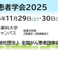 一般社団法人全国がん患者団体連合会(全がん連)では、2024年に国立研究開発法人国立がん研究センターで開催された「がん患者学会2024」に続き、2025年11月29日(土)30日(日)に大阪医科薬科大学にて「がん患者学会 …