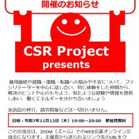 仕事の不安、気持ちが落ち着かない、そんな時、オンラインで仲間と語り合ってみませんか? お申込みはCSRプロジェクトのHPよりお願いいたします。赤色のフォームズです。 ■詳細とお申し込みはこちらから(赤色のフォームズです) …